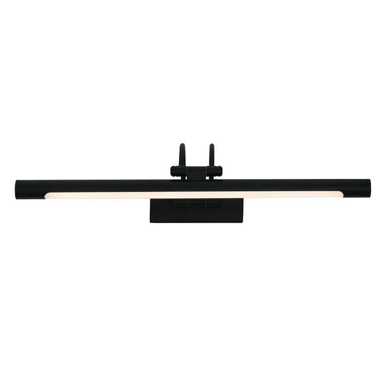 Πρόκειται για ένα μαύρο μεταλλικό επιτοίχιο φωτιστικό με κινούμενο το μπροστινό μέρος. Το λευκό ακρυλικό καλύπτει τον led φωτισμό θερμής απόχρωσης.