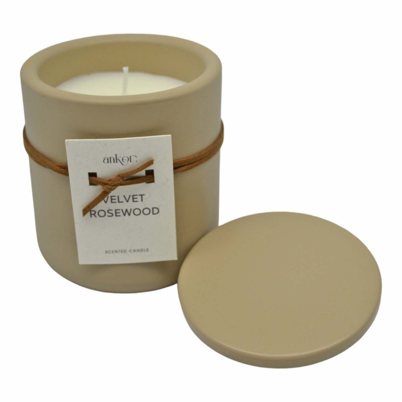 Απολαύστε την ατμόσφαιρα ηρεμίας με το αρωματικό κερί σε τσιμεντένιο μπεζ δοχείο με καπάκι. Η μοντέρνα σχεδίαση του δοχείου προσθέτει μια διακοσμητική πινελιά σε κάθε χώρο, ενώ το velvet rosewood άρωμα θα σας μεταφέρει σε έναν κόσμο από ευχάριστες νότες