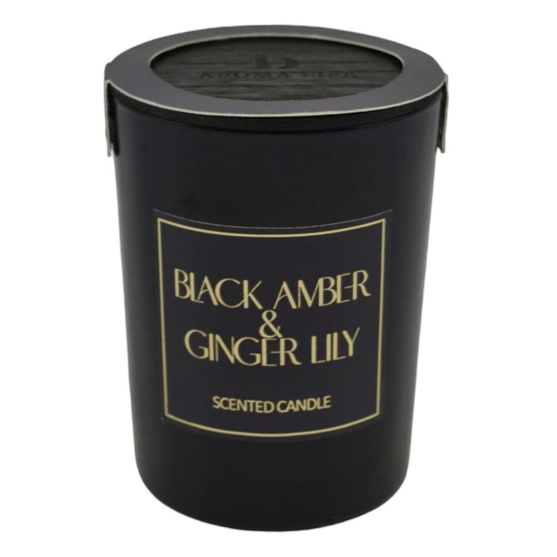 Υποδεχτείτε την αίσθηση της αρωματικής πολυτέλειας Black Amber & Ginger Lily σε κομψό γυάλινο δοχείο με ξύλινο καπάκι. Συνδυάζει την έντονη ευωδία του κεχριμπαριού με τη θερμή αίσθηση του τζιντζερ κ δημιουργεί ατμόσφαιρα γεμάτη μυστήριο και κομψότητα.