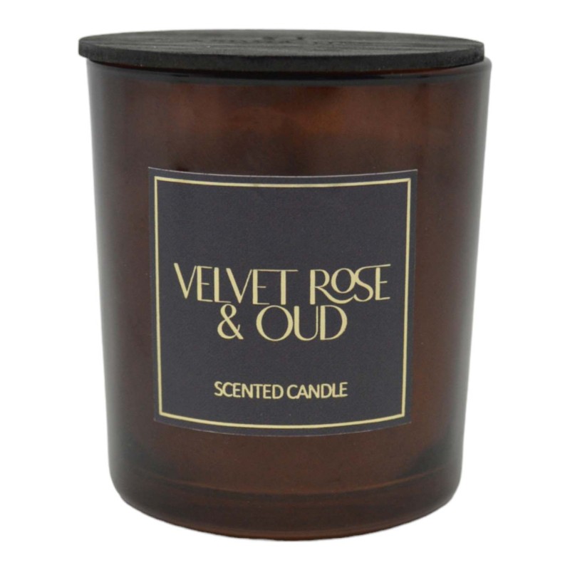 Το αρωματικό κερί Velvet Rose & Oud συνδυάζει τη γλυκιά νότα του τριαντάφυλλου με την πλούσια ευωδία του ξύλου, σε ένα κομψό γυάλινο δοχείο με ξύλινο καπάκι. Απολαύστε την αρωματική πολυτέλεια και δημιουργήστε ένα ατμοσφαιρικό περιβάλλον γεμάτο κομψότητα.