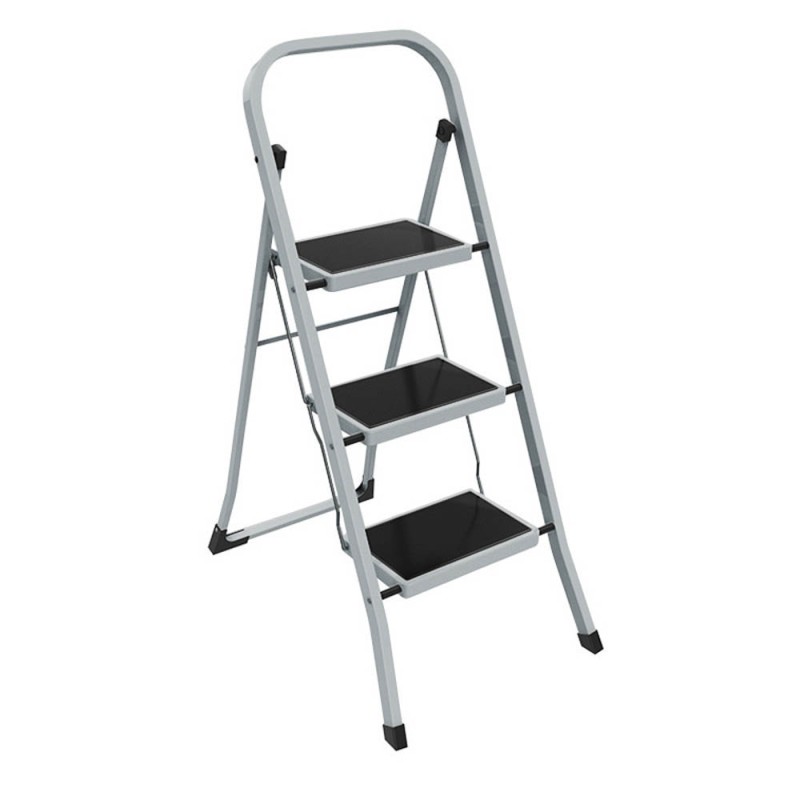Σκάλακι μεταλλικό με τρία σκαλοπάτια σε μαύρο χρώμα και αντιολισθητική επίστρωση για έξτρα σταθερότητα. Διαθέτει ασφάλιση ανοίγματος, αντιολισθητικά πέλματα για ασφαλή τοποθέτηση,είναι αναδιπλούμενη για εύκολη αποθήκευση και ελαφριά για εύκολη μεταφορά.