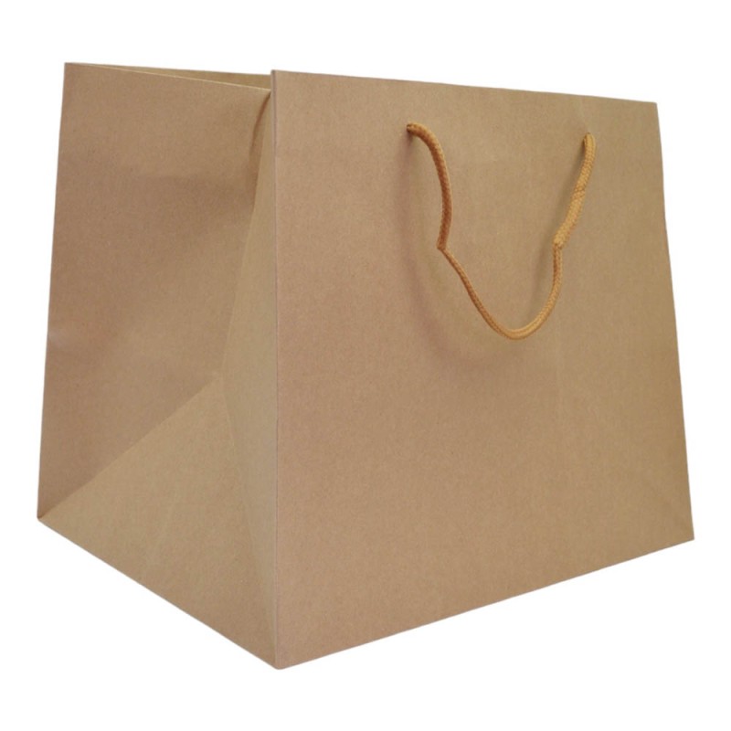 Χάρτινη τσάντα δώρου craft υψηλής ποιότητας σε καφέ χρώμα και χειρολαβή από κορδόνι.