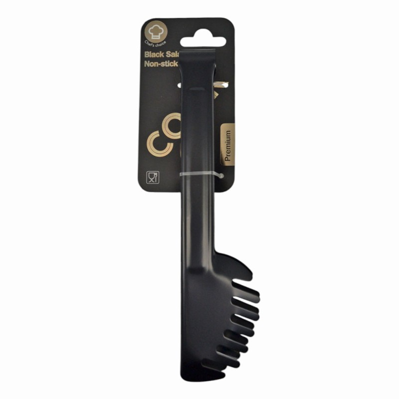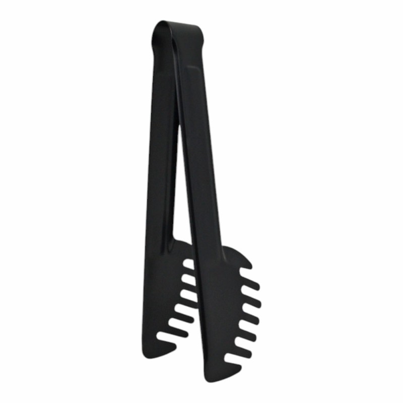 Λαβίδα ζυμαρικών από ανοξείδωτο ατσάλι με μαύρο ματ φινίρισμα και αντικολλητική επίστρωση για προστασία των σκευών. Ο εργονομικός σχεδιασμός εξασφαλίζει άνετο και ασφαλές κράτημα, καθιστώντας την ιδανική για το σερβίρισμα ζυμαρικών και άλλων φαγητών.