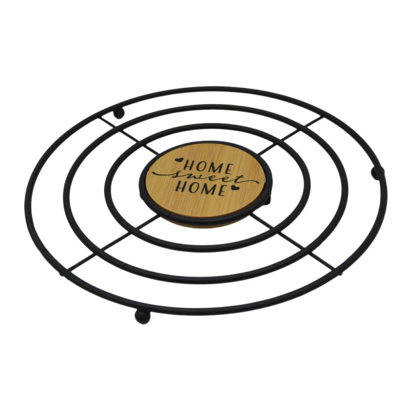 Κομψό και ανθεκτικό μεταλλικό σουπλά με μοντέρνο μαύρο ματ φινίρισμα. Διαθέτει κεντρική ξύλινη διακοσμητική πινακίδα Home Sweet Home και ποδαράκια για σταθερότητα. Ιδανικό για την προστασία των επιφανειών από τη θερμότητα κ τη διακόσμηση του τραπεζιού σας