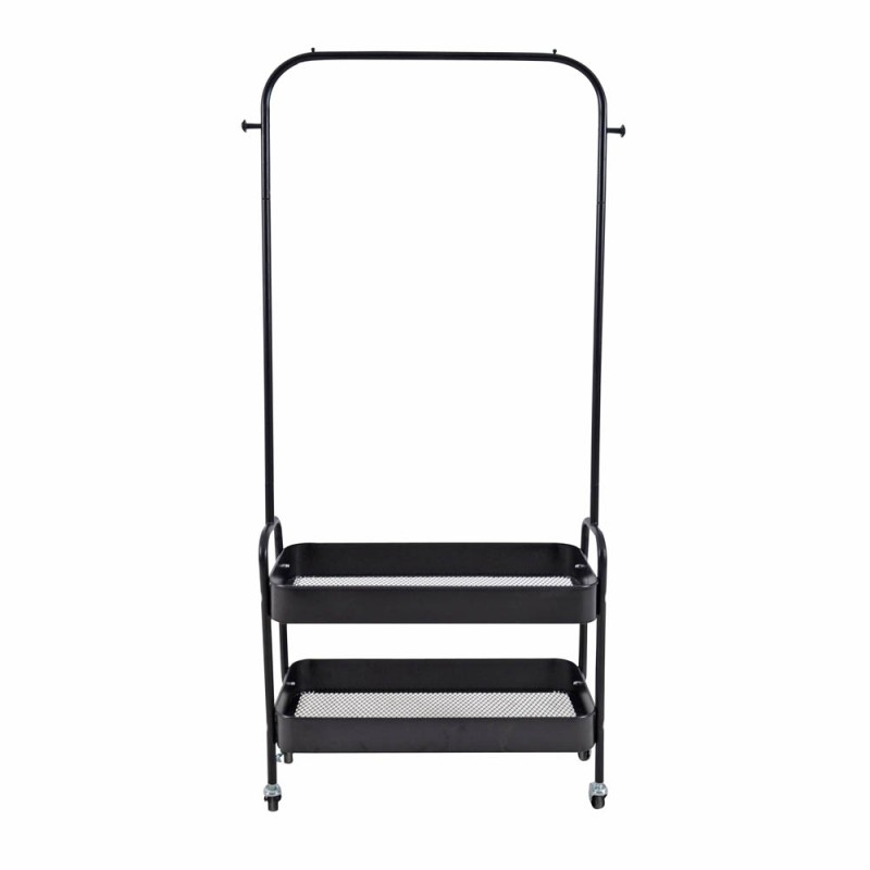 Κρεμάστρα ρούχων μεταλλική με τέσσερις ρόδες, μοντέρνου σχεδιασμού, σε μαύρο ματ χρώμα.Διαθέτει δύο καλάθια στο κάτω μέρος και μεταλλικό στοπ στις ρόδες. Οι καλόγεροι ρούχων αποτελούν έξυπνη και πρακτική λύση για να είναι ο χώρος σας πάντα τακτοποιημένος.