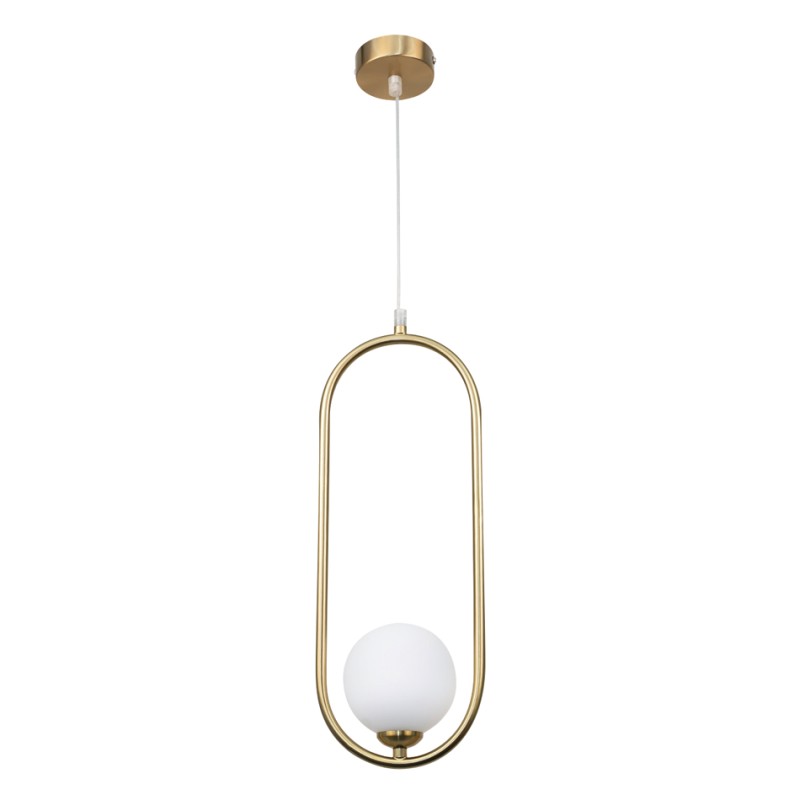 Πρόκειται για ένα φωτιστικό κατασκευασμένο από χρυσαφί μέταλλο και λευκή οπαλίνα. Το φως διαχέεται ομοιόμορφα και το ύψος του μπορεί να ρυθμιστεί.