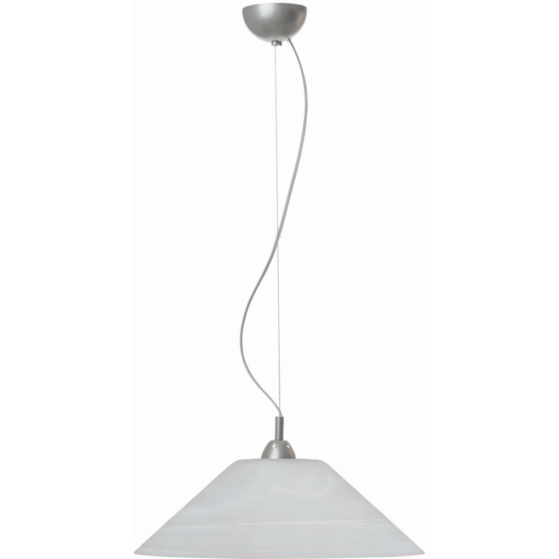 Φωτιστικό μονόφωτο γυάλινο κλασικό σε λευκό αλάβαστρο με συρματόσχοινο νίκελ Ε27 Φ45