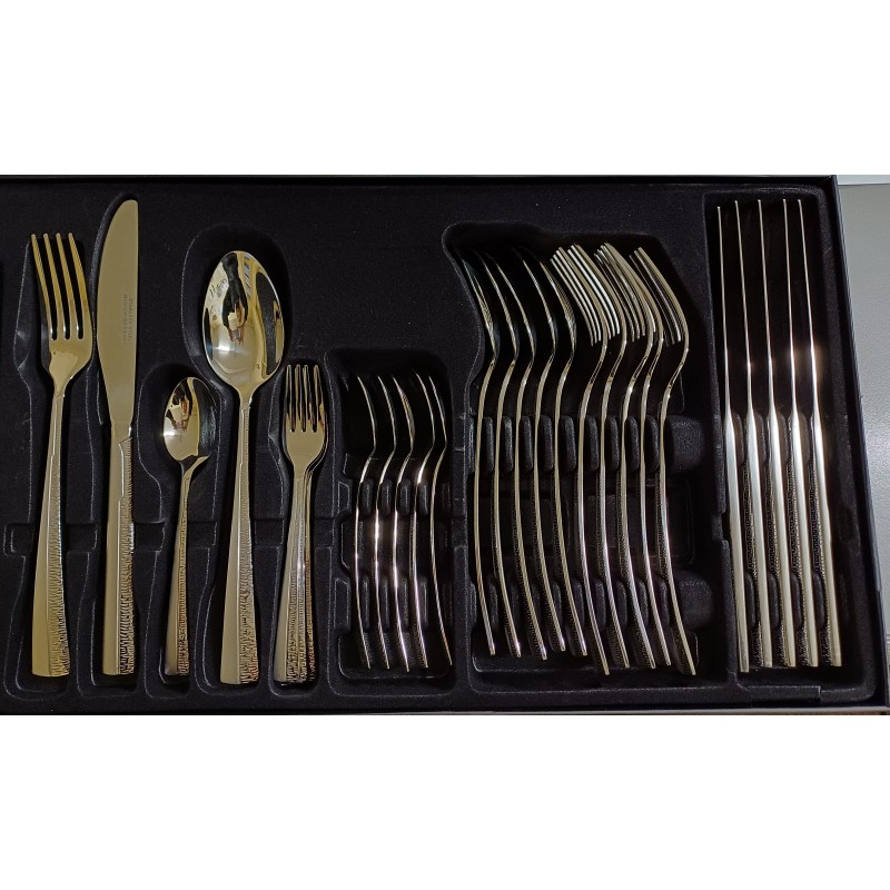 Σετ μαχαιροπίρουνα 30 τεμαχίων ασημί με σχέδιο στο πλάι, από ανοξείδωτο ατσάλι 18/10 σε συσκευασία δώρου. Ασφαλής για το πλυντήριο πιάτων.Το σετ αποτελείται από:6 κουτάλια φαγητού6 πιρούνια φαγητού6 μαχαίρια φαγητού6 κουταλάκια γλυκού6 πιρουνάκια φρούτου