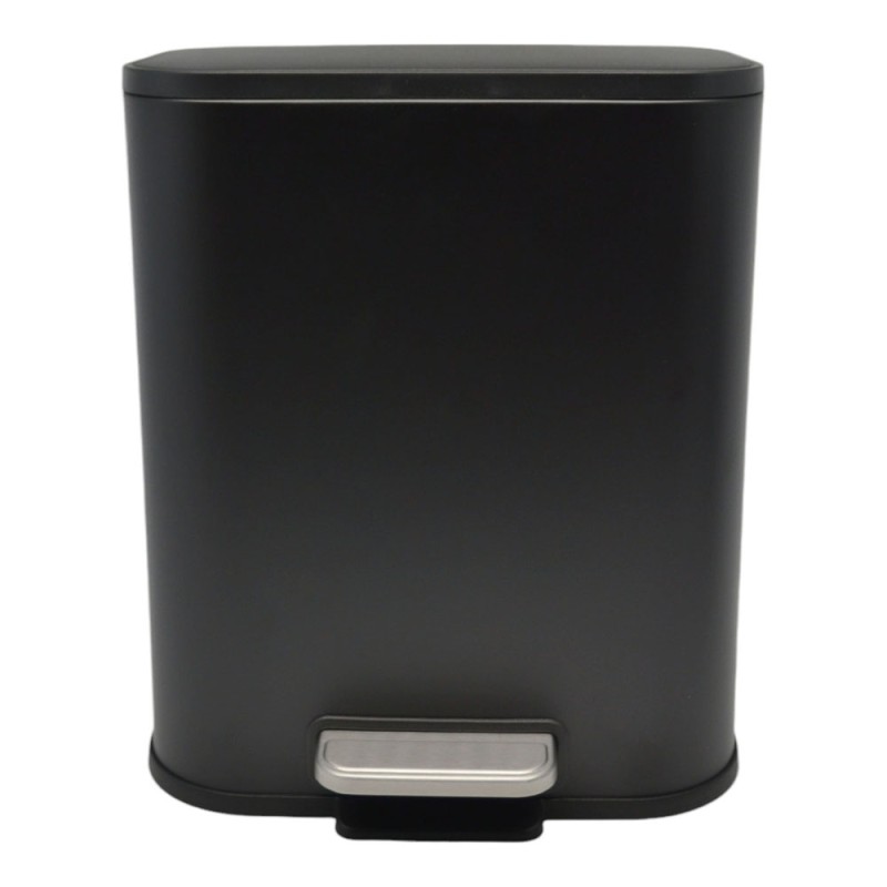 Κάδος απορριμμάτων μεταλλικός με ηλεκτροστατική βαφή σε μαύρο χρώμα, ματ φινίρισμα και καπάκι με αυτόματο κλείσιμο. Πεντάλ υψηλής αντοχής, με σύστημα ανοίγματος με το πόδι και αφαιρούμενο εσωτερικό κάδο με χειρολαβή για εύκολη μετακίνηση και καθάρισμα.