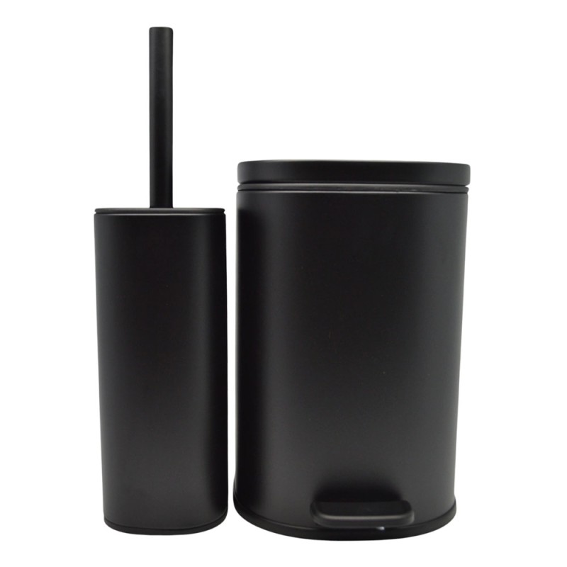 Σετ με κάδο απορριμμάτων και πιγκάλ, από ανοξείδωτο ατσάλι με μαύρο ματ φινίρισμα που δεν αφήνει δαχτυλικά αποτυπώματα. Ο κάδος έχει καπάκι με αυτόματο κλείσιμο κ αφαιρούμενο εσωτερικό κάδο για εύκολο καθάρισμα.Το πιγκάλ διαθέτει μαύρο ανθεκτικό βουρτσάκι