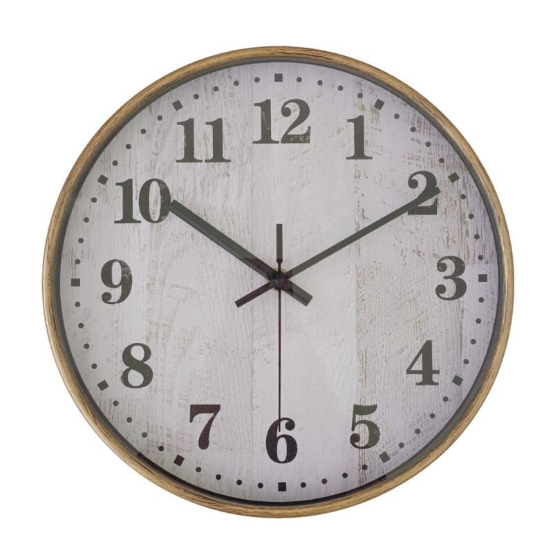 Ρολόι τοίχου με πλαστικό πλαίσιο σε αντικέ χρυσή και καφέ απόχρωση. Το καντράν θυμίζει παλιωμένο χαρτί, με μεγάλους αριθμούς και λεπτούς μαύρους δείκτες. Κλασικό και διαχρονικό στυλ που ταιριάζει σε κάθε χώρο. Η συσκευασία περιλαμβάνει και τα δύο σχέδια.