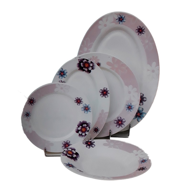 Πιάτα οπαλίνα με μοτίβο λουλούδια σε ροζ,μοβ και μπλε χρωματισμό.Ασφαλής για το πλυντήριο πιάτων.