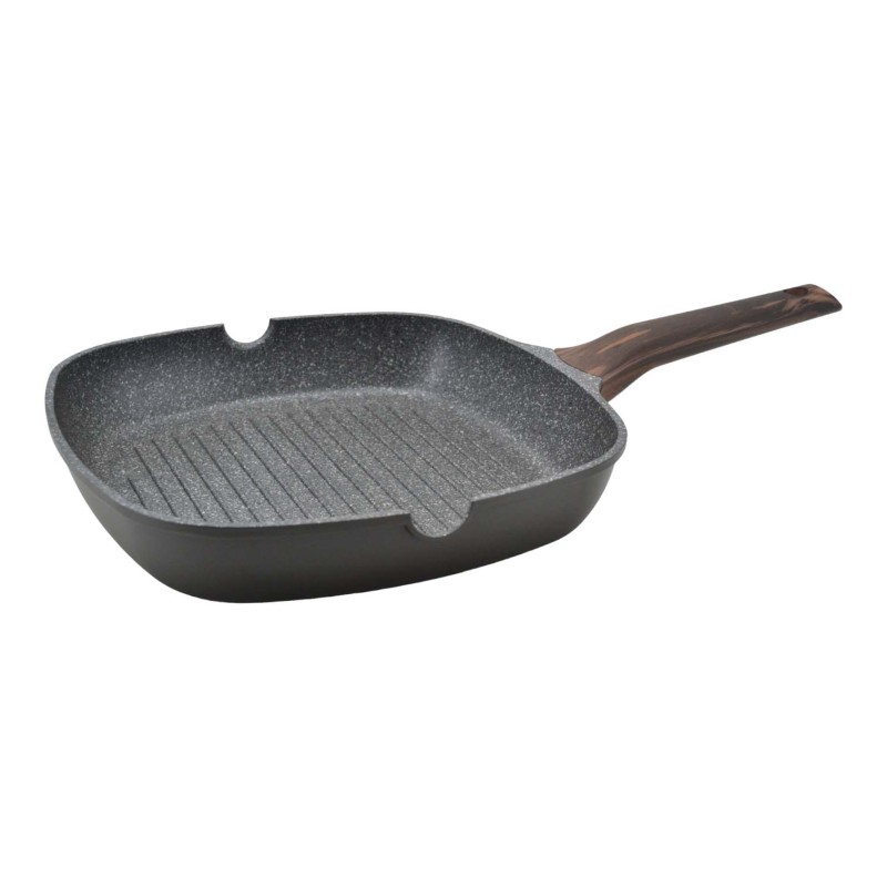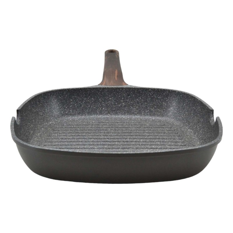 Γκριλιέρα αλουμινίου με τριπλή αντικολλητική επίστρωση πέτρας κ αντοχή σε υψηλές θερμοκρασίες κ γδαρσίματα.Διαθέτει βιομηχανικό πάτο,ενισχυμένη εξωτερική επιφάνεια κ λαβή από βακελίτη soft touch.Είναι κατάλληλη για όλες τις εστίες κ για πλυντήριο πιάτων