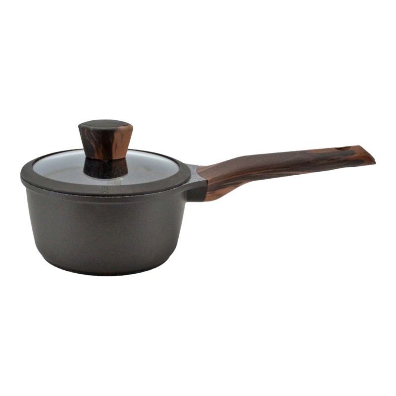 Γαλατιέρα αλουμινίου με τριπλή αντικολλητική επίστρωση πέτρας κ αντοχή σε υψηλές θερμοκρασίες κ γδαρσίματα. Διαθέτει βιομηχανικό πάτο, γυάλινο καπάκι με σιλικόνη κ λαβές από βακελίτη soft touch.Είναι κατάλληλη για όλες τις εστίες κ για το πλυντήριο πιάτων