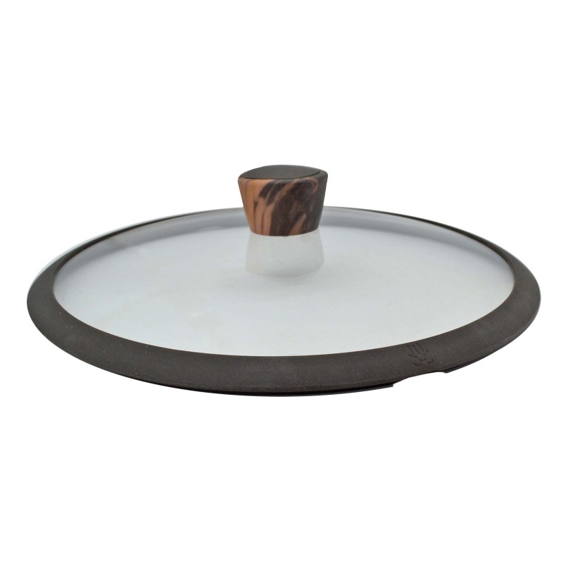 Γυάλινο πυράντοχο καπάκι, για σκευή 28εκ.,το οποίο περιβάλλεται από στεφάνι σιλικόνης. Η λαβή του είναι από αντιολισθητικό βακελίτη soft touch σε όψη ξύλου προσφέροντας άνεση κατά τη χρήση και αντιθερμική προστασία. Είναι κατάλληλο για το πλυντήριο πιάτων