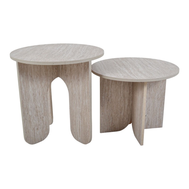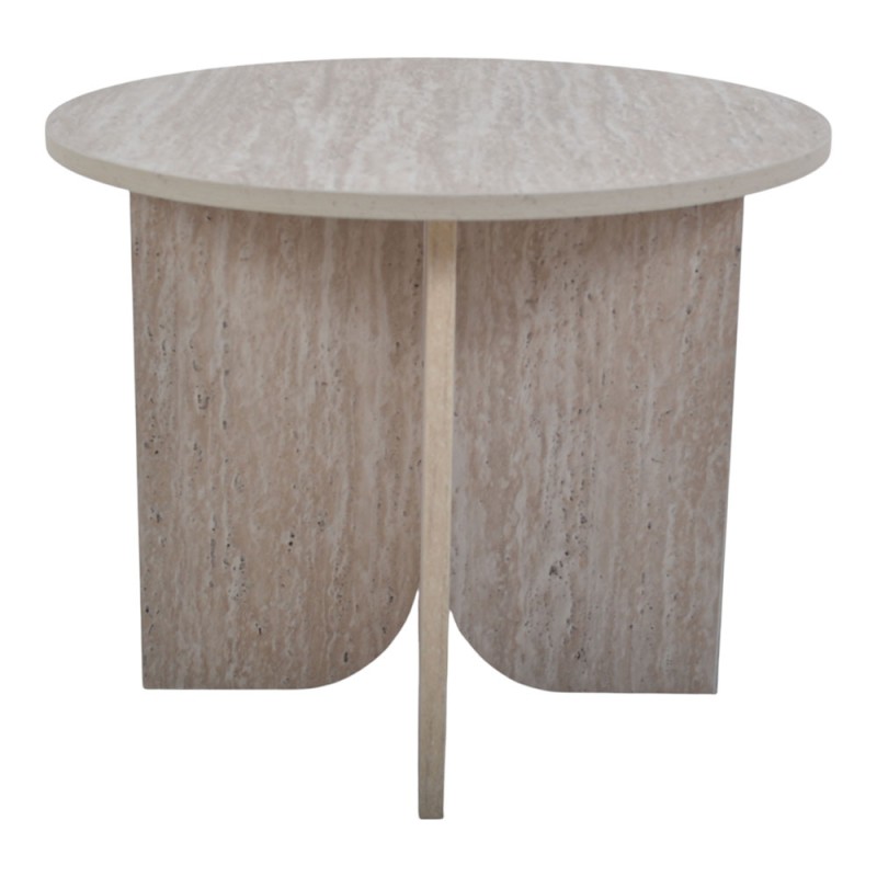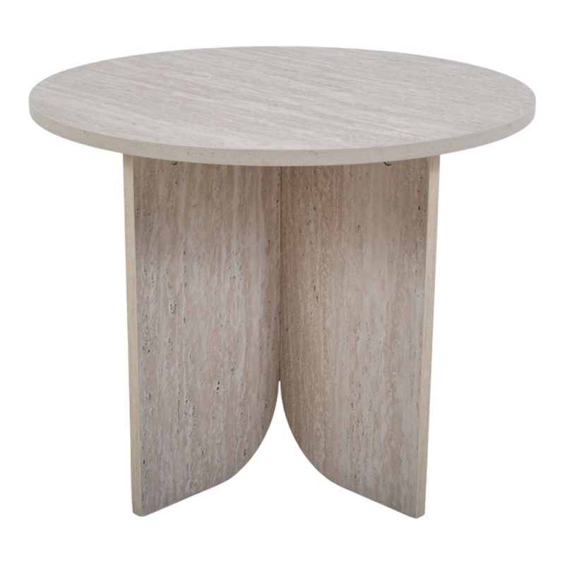 Τραπέζι ξύλινο στρογγυλό με όψη φυσικής πέτρας, που ξεχωρίζει για τον μίνιμαλ και σύγχρονο σχεδιασμό του. Η στιβαρή του βάση με καμπύλες γραμμές προσφέρει σταθερότητα, ενώ η ανοιχτόχρωμη επιφάνεια δημιουργεί μια αίσθηση κομψότητας και φυσικής αρμονίας στον χώρο. Ιδανικό για σαλόνι, καθιστικό ή επαγγελματικό χώρο. Μπορεί να συνδυαστεί αρμονικά με το άλλο τραπέζι της ίδιας σειράς, δημιουργώντας ένα ενιαίο και ισορροπημένο σύνολο διακόσμησης.